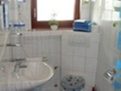 - Bad mit Dusche, Waschbecken und WC