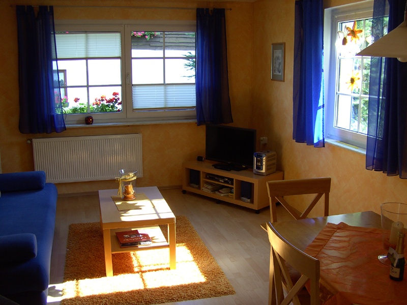 - Wohnzimmer mit SAT-TV,, DVD-Player und Radio