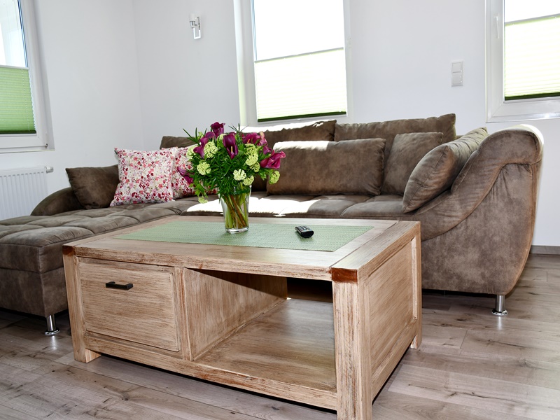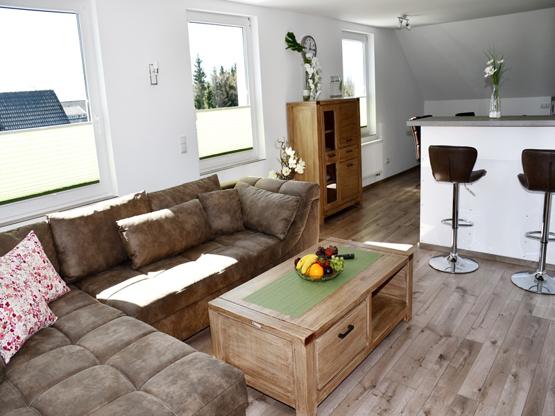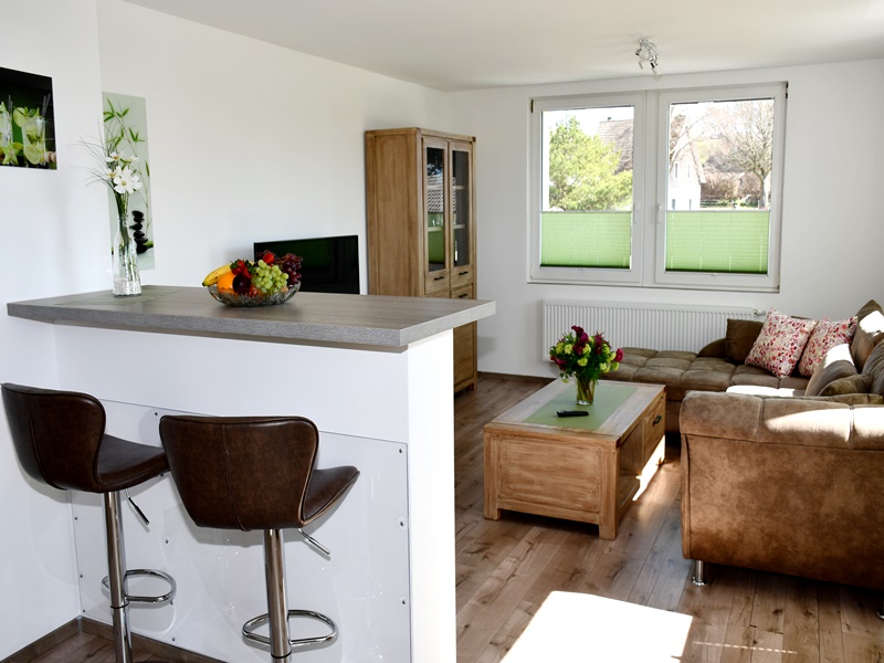 Das geschmackvolle Wohnzimmer verfügt über ein Schlafsofa für die 5. Person und SAT-TV.